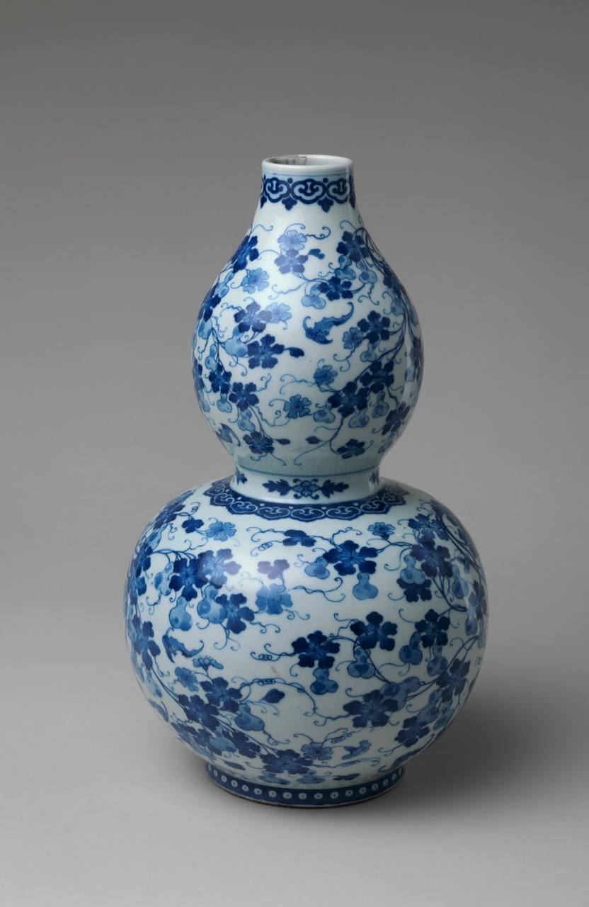 青と白の福禄万代ひょうたん瓶
